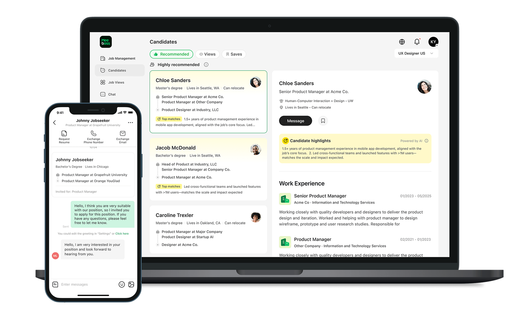 MeeBoss’s chat feature helps establish trust in a way other platforms do not. We hired 3 roles in 3 weeks. It was very efficient and fast because MeeBoss helped filter candidates so my time was spent talking only with high-quality applicants serious about the roles.